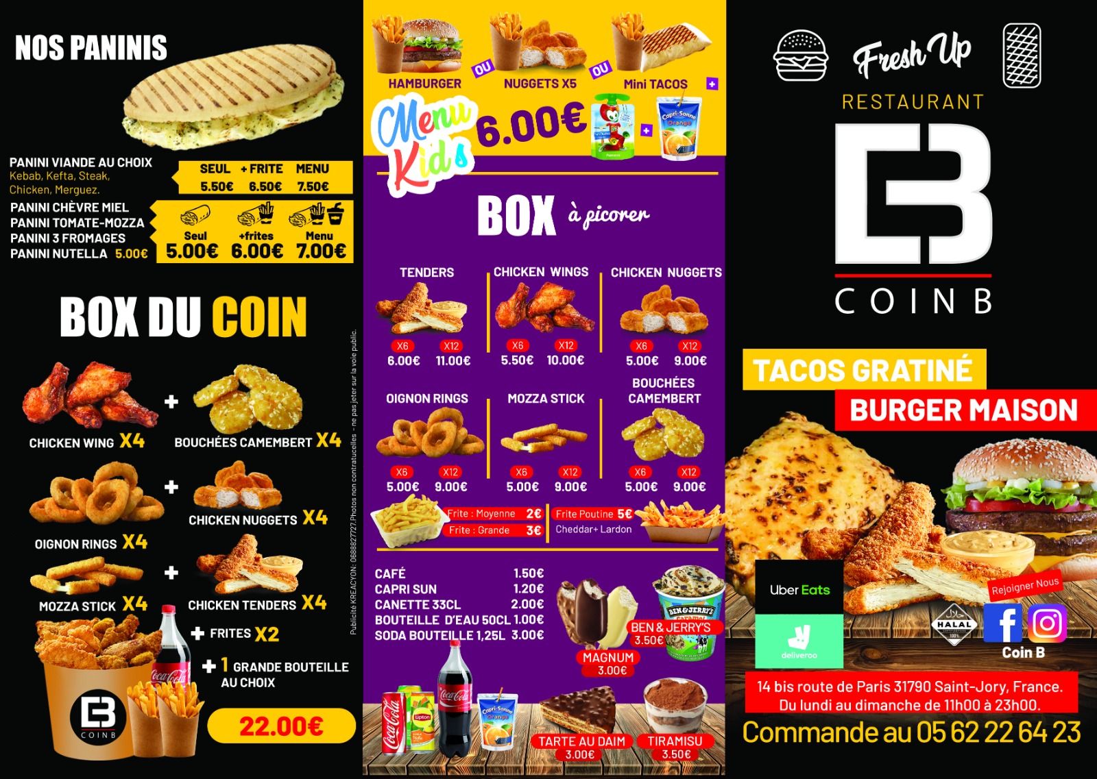 Commander en ligne Consultez notre menu ci-dessus ou appelez-nous